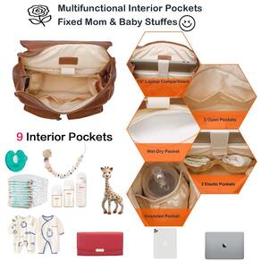 bolsa de fraldas - Mochila multifuncional à prova d'água para fraldas. Oferece uma solução versátil para todas as suas necessidades em movimento. O recurso à prova d'água desta mochila de fraldas garante a segurança de todos os itens essenciais contra derramamentos ou condições climáticas. - A bolsa de fraldas está equipada com um trocador (69,8 cm x 44,5 cm), oferecendo um local higiênico e conveniente para trocar fraldas quando você estiver longe de casa. Seu design dobrável também economiza espaço e permite fácil acessibilidade. - Como uma bolsa de fraldas de grande capacidade para mães (28 x 16 x 39 cm), este item acomoda tudo o que seu pequeno precisa. De garrafas, fraldas, roupas, brinquedos até seus próprios itens essenciais, esta bolsa pode armazenar tudo sem qualquer incômodo. - Não é apenas prática, mas também é uma mochila elegante e durável para bebês. Com seu design moderno e materiais duráveis, esta bolsa de fraldas é um item essencial para pais modernos que valorizam funcionalidade e estilo. - O design prioriza a organização: esta mochila de fraldas com vários bolsos (9 bolsos internos e 5 bolsos externos) vem com vários compartimentos de vários tamanhos, garantindo que cada item tenha seu próprio espaço. Isso permite a fácil recuperação de itens em movimento, tornando as viagens confortáveis e sem usar as mãos livres