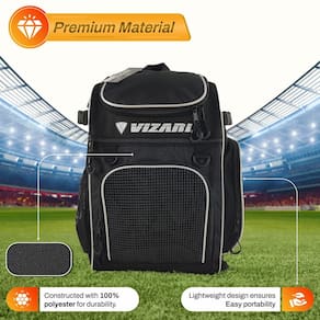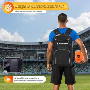 Vizari Mochila de futebol com compartimento de bola e bolso de bola ventilado e bolsos cargo laterais de malha para adultos e adolescentes