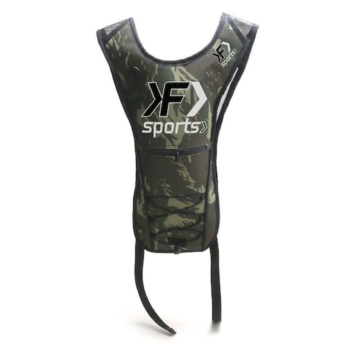 Mochila de Hidratação Térmica Impermeável com Bolsa D Água 2 Litros Camuflada Mochila de Hidratação Camuflada Small F Sports 2 litros Térmica Confeccionada em nylon. Revestida internamente com Manta Alumi Term que mantém a temperatura. Fitas de nylon de alta resistência. Suporte(fita) para fixação da lanterna traseira. Compartimento do sistema de hidratação fácil manuseio. Acompanha reservatório (refil, mangueira e Bico) de água capacidade 2 litros. Possui um bolso grande individual com fechamento por zíper. Possui saída para fone de ouvido. Alças em tela diminuindo o atrito e melhorando a ventilação. Fitas de ajuste peitoral. Duas faixas refletivas parte frontal. Medidas: L: 225mm x C: 400mm x P: 20mm.