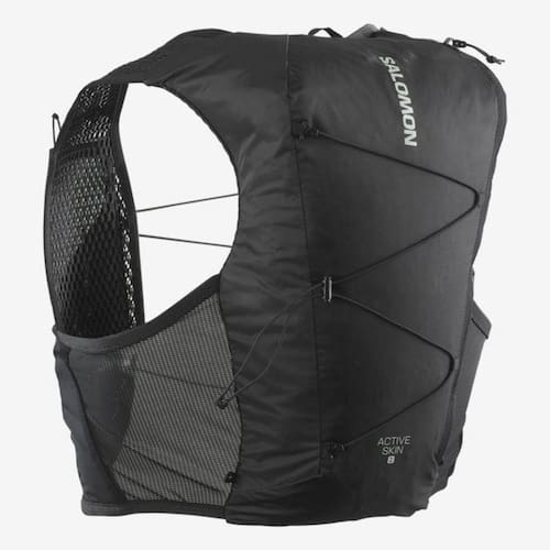 Mochila de Hidratação Salomon Active Skin 8 Tamanho: P A Mochila Salomon Active Skin 8 foi projetada para oferecer praticidade, leveza e ajuste seguro em corridas de trilha e aventuras outdoor. Com capacidade de 8 litros, é ideal para treinos, provas de curta a média duração e caminhadas técnicas. Com tecidos respiráveis e a tecnologia SensiFit tm , o modelo garante conforto, estabilidade e fácil acesso aos bolsos frontais. Compatível com frascos de 500 ml não inclusos e reservatório de até 1,5 L, é a parceira perfeita para quem busca performance e liberdade de movimento. Características Mochila leve, pesando apenas 213 g Tecnologia SensiFit tm para ajuste preciso e seguro 1 bolso principal traseiro 1 compartimento compatível com reservatório de 1,5 L não incluso 1 bolso frontal com zíper 1 bolso interno para pequenos itens 2 bolsos frontais compatíveis com frascos de 500 ml não inclusos Design respirável e ergonômico para longas distâncias Especificações Técnicas Peso: 213 g Capacidade: 8 L Marca: Salomon Modelo: Active Skin 8 Cor: Black/Metal Material principal: 100% Poliamida Forro: 100% Poliamida Encaixe traseiro: 89% Poliamida, 11% Elastano Corpo traseiro: 100% Poliéster Encaixe corporal: 88% Poliamida, 12% Elastano Conteúdo da Embalagem 1 Mochila Salomon Active Skin 8 sem flasks 1 Manual de instruções Cuidado & Durabilidade Lavar à mão em água fria 30 C Não utilizar alvejante Não lavar a seco Não usar secadora Não passar a ferro Informações Importantes Frascos de hidratação e reservatório não inclusos Ideal para corridas de trilha, treinos, trekking e aventuras outdoor Marca: Não Informado