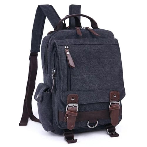 * Mochila de lona vintage para uso unissex com fivelas de metal fáceis de usar e ajustáveis em altura. Com zíper de metal bidirecional para poder abrir facilmente. Duas posições para uso em ombros cruzados ou para andar de ombros separados, lindo estilo juvenil. Com 6 bolsos internos para aproveitar os espaços.