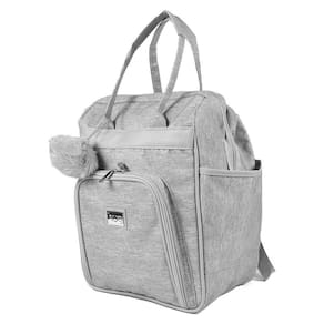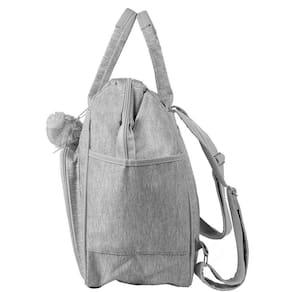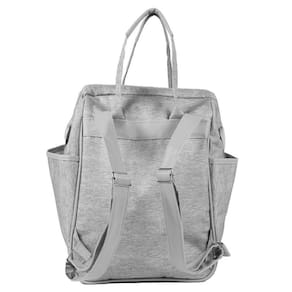 Mochila de maternidade multifuncional HUG com alça de mão, bolsos laterais grandes para mamadeiras, alça de costas ajustáveis, compartimento grande principal e compartimento frontal um pouco menor.