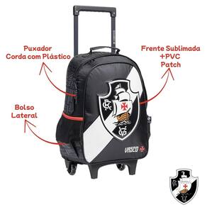 Características: - Confeccionada em Poliéster - Dois bolsos laterais em mesh - Carrinho duplo achatado - Escudo oficial do Vasco - Frente Sublimada + PVC Patch - Compartimento principal espaçoso - Alças de mão de tira forrada - Alças de costas acolchoadas e ajustáveis - Puxador corda com plástico - Forro Interno Personalizado