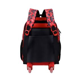 Em tamanho 14 com Alças de ombro , produzida em poliéster resistente e estampado. Painel frontal PVC patch reticular - Compartimento principal amplo e mais um compartimento extra , 2 bolsos laterais mesh, zíper com puxadores personalizados, alça de mão em nylon com mesh e piping forrado. Carrinho em metal com travas.