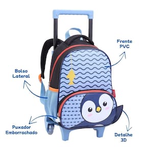 Mochila de Rodas Pinguim Meninos  Passeio Infantil - Seanite