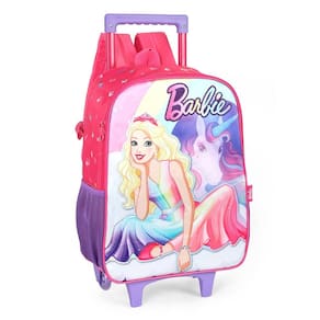 Mobilidade fácil: Rodinhas de alta qualidade que deslizam suavemente. Ideal para uso escolar ou passeiosAlívio de peso: Carrinho embutido com alça ajustável, permitindo que a mochila seja puxada sem esforçoDurabilidade e estilo: Produzida em poliéster resistente, com design temático e cores vibrantes que encantam as fãs da Barbie. Alça nas costas com regulagem de tamanho.Alça superior para segurar na mão quando necessário.Amplo espaço interno: Capacidade ideal para livros, cadernos, estojo e outros materiais2 bolsos laterais com elástico para garrafas e pequenos objetosPossui zíperes com puxadores personalizados em metal com formato de coraçãoEstrutura reforçada para maior durabilidade