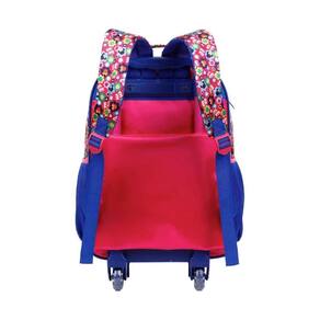 Mochila de Rodinha Rosa Escolar Minnie Xeryus Em tamanho 14 com Alças de ombro , produzida em cetim estampado. Painel frontal em cetim vincado - Compartimento principal amplo, 2 bolsos laterais mesh, zíper com puxadores personalizado, alça de mão em nylon com poliester e piping forrado. Carrinho em metal com travas.