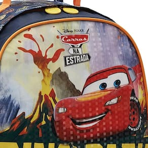 - Design Temático: - Frente em PVC reticulado, que traz um toque moderno e único ao produto. - Estampa exclusiva dos personagens Relâmpago McQueen e Tom Mate, que captura toda a adrenalina e diversão da série.