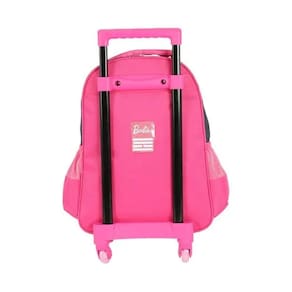 - confeccionada em poliéster e pvc - com amplo espaço interno. - com bolsos laterais para garrafinha. - com 2 bolsos. - com um bolso frontal espaçoso e um frontal médio. - com alça de mão acolchoada. - com puxadores de zíper personalizados. - chaveiro exclusivo barbie skate. - com rodinhas que giram 360 graus.