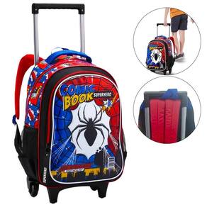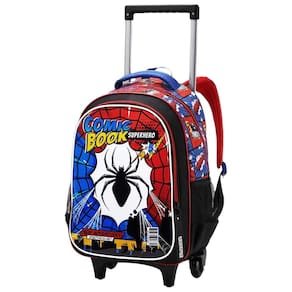 Mochila De Rodinhas Escolar Infantil Spider Comic Book Hero Cor: Preto Mochila de Rodinhas Escolar Infantil Spider Comic Book Hero - Inspirada no universo dos super-heróis, esta mochila de rodinhas une estilo, praticidade e versatilidade. Com uma estampa vibrante em estilo comic book, ela possui alças de costas ajustáveis e acolchoadas, além de um sistema de rodinhas suaves, garantindo conforto ao carregar e a opção de puxá-la com facilidade. Ideal para pequenos aventureiros que buscam ação e praticidade no dia a dia escolar