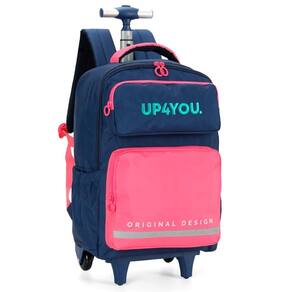 Contém: 01 un - mochila de rodinhas escolar azul e rosa up4you - luxcel. 01 un - lancheira térmica up4you azul e rosa escolar - luxcel