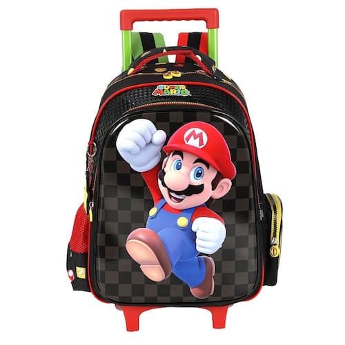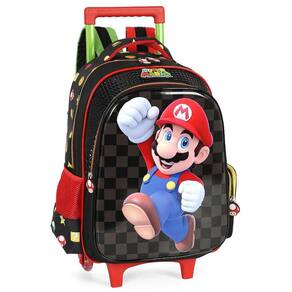 Mochila de Rodinhas Luxcel Com Alça Mario Bros Preto - Único-Preto