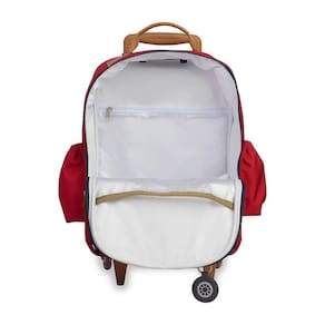 Mochila de rodinhas MasterBag com bolso principal grande com vários compartimentos internos, bolso frontal personalizado, bolsos laterais com elástico para garrafinha. Além de contar alça de mão e etiquetas personalizadas.
