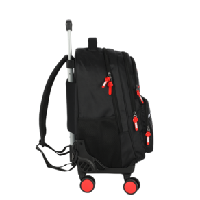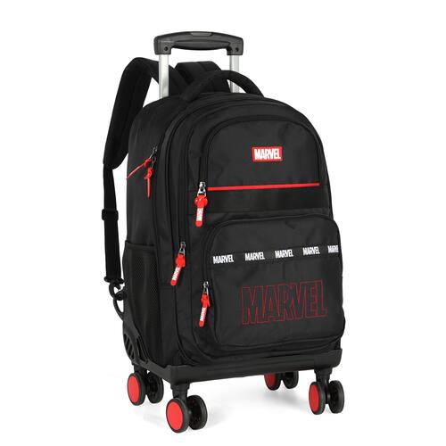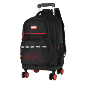 Características: Design exclusivo Marvel: combinação moderna nas cores pretas com detalhes vermelhos, com características que destacam a marca. Rodinhas 360º: facilitam a locomoção, proporcionando mais estabilidade e praticidade no transporte. Alça retrátil: resistente e ajustável, perfeita para puxar a mochila com conforto. Alças acolchoadas: também pode ser usada como mochila de costas, garantindo versatilidade. Múltiplos compartimentos: diversos bolsos e divisórias espaçosas para organizar cadernos, livros, acessórios e muito mais. Material resistente: confeccionada em poliéster de alta durabilidade.