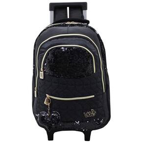 DESCRIÇÃO DA MOCHILA: - Alça nas costas com regulagem de tamanho. - Alça superior reforçada para segurar na mão quando necessário. - Zíper Duplo. - Zíper personalizado. - 2 Bolsos laterais para garrafa. - Possui 4 bolsos, sendo um principal para colocar livros, cadernos, apostilas e outros 3 menores, sem contar os 2 bolsos laterais. - Mochila com material reforçado. - Estampa de paetê - Estampa em Matelassê. - Chaveiro em formato de coração com paetê.