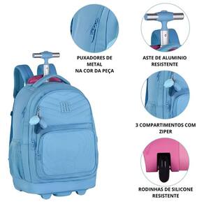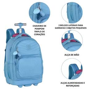 A mochila da linha Rebecca Bonbon, da Clio Style, é um item perfeito para quem busca unir estilo, funcionalidade e durabilidade. Com medidas de 35cm x 48cm x 19cm, esta mochila se destaca por seu design charmoso e prático. Equipada com rodinhas de silicone e uma haste que se eleva até 99cm, é ideal para facilitar o transporte.