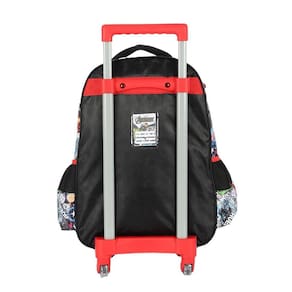 Mochila de rodinhas sem alça, bolsos laterias em tela com elástico, silk frontal, bolso frontal com zíper, alça de mão e etiquetas personalizadas.