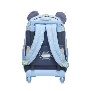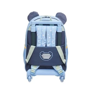 O carrinho colorido com rodinhas em gel com glitter proporciona mobilidade suave e cheia de personalidade. O fechamento com zíper e os puxadores personalizados garantem segurança e charme extra. Feita em poliéster resistente, a mochila inclui ainda etiqueta de identificação nas costas e logo frontal em silk.