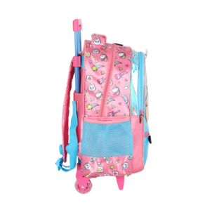 Design exclusivo da Magali: estampa vibrante com efeito brilhante e detalhes fofos da personagem e suas famosas melancias. Rodinhas resistentes: facilitam o transporte, trazendo praticidade para o dia a dia escolar. Alça retrátil ajustável: para puxar a mochila com conforto. Alças acolchoadas: opção de uso também nas costas. Compartimento principal amplo: ideal para cadernos, livros e pastas. Bolso frontal com zíper: perfeito para guardar objetos menores. Bolsos laterais em tela: ideais para garrafinhas e acessórios. Material de qualidade: resistente e fácil de limpar.