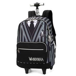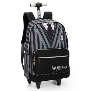 01 un - mochila de rodinhas wandinha uniforme preto.