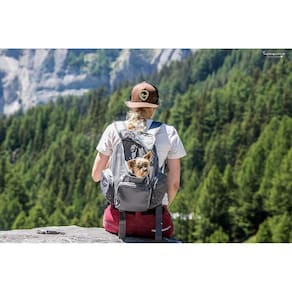Esta mochila é feita com tiras de malha bem recheadas para conforto enquanto você a carrega. Possui um fundo removível e acolchoado para maior conforto do cão. Feito com tecido resistente à água, macio e durável.