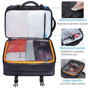 BANGE Mochila de viagem para homens e mulheres, Preto, Negócios - ?Design expansível de 22 a 35 litros?: antes do alargamento é de 22 L, as dimensões são 44,5 x 30 x 14 cm; após a extensão é de 35 L, as dimensões são 44,5 x 30 x 24 cm. Você pode expandir o zíper e as fivelas de acordo com suas necessidades. As duas alças são colocadas na parte superior e em um lado, o que permite uma troca fácil entre mochila e mala. Para que possa ser transportada vertical ou horizontalmente. O cinto de bagagem na parte traseira permite deslizar sobre o tubo de bagagem, a mochila é muito fácil de transportar, é ótima para viagens diárias de 3 a 5 dias. - ?Grande capacidade fácil de transportar?: a mochila com muitos compartimentos, organização e expansão. O bolso principal pode guardar seus itens de viagem, cabe de 5 a 8 peças de roupas. É legal que haja uma bolsa úmida para líquidos. O compartimento frontal também pode conter revistas, iPad e carregador portátil que pode carregar seu telefone. Tamanho do compartimento para laptop de 48 cm: 41,9 cm x 30 cm (verifique o tamanho do seu laptop), a mochila traseira com massa acolchoada pode proteger seu laptop. - ?Design à prova d'água e antirroubo?: 1. O bolso traseiro com zíper da mochila protege seus artigos preciosos, como telefone, passaporte, carteira de possíveis roubos ao viajar ou fazer alinhamento; 2 materiais de PVC à prova d'água, bolsa interna à prova d'água para proteger seus produtos da água. 3. Design ergonômico com fluxo de ar traseiro com acolchoamento ventilado espesso mas macio para maior suporte e conforto, diminuindo a pressão do ombro e pescoço; 4. Alças de ombro com cinto peitoral antiderrapante ajustável e liberação rápida - ?Durável e multiuso?: As juntas do ombro e da alça são feitas de costura ousada para torná-la mais resistente. As duas alças grossas são confortáveis para carregar por muito tempo. Todos os zíperes são duráveis e suaves, resistentes à prova de explosão. Diferentes compartimentos com diferentes tamanhos e recursos permitem que você armazene itens de forma fácil e organizada. Uma ótima companhia para viagens, viagens de negócios, caminhadas, viagens, acampamento e outras atividades ao ar livre. - ?Nosso serviço?: Se você não estiver satisfeito dentro de um mês, poderá obter um reembolso incondicional. Se você tiver problemas de qualidade dentro de um ano, . Responderemos ao seu pedido e pós-venda dentro de 24 horas.