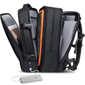 BANGE A mochila de mão masculina pode ser expandida de 22 L para 35 L, e é perfeita para viagens de negócios, pode armazenar 5 a 7 roupas no compartimento principal, compatível com laptop de 17,3 polegadas e iPad de 9,7 polegadas. Há um bolso separado seco e molhado, e você pode separar seus itens de lavagem úmida dos outros. As duas alças são colocadas na parte superior e em um lado, o que permite uma troca fácil entre mochila e mala. Para que possa ser transportada vertical ou horizontalmente. O cinto de bagagem na parte de trás permite deslizar sobre o tubo de bagagem, mochila muito fácil de carregar. No bolso principal, há zíper duplo durável, permite que você abra a mochila a 180 graus, é muito fácil de colocar e levar seus itens. A mochila de viagem BANGE é aprovada pela FAA e é muito adequada para viagens de negócios. Material de PVC impermeável, bolsa interna à prova d'água para proteger seus produtos da água. Design ergonômico com fluxo de ar nas costas com acolchoamento ventilado de vários painéis espessos, mas macios para maior suporte e conforto, diminuindo a pressão do ombro e pescoço. Alças de ombro com cinto peitoral antiderrapante ajustável e liberação rápida. Uma ótima companhia para viagens, viagens de negócios, caminhadas, viagens, acampamento e outras atividades ao ar livre. - ?Mochila expansível para viagem?: a mochila de viagem Bange tem o design de expansão, o armazenamento normal é de 22 L. Ao abrir o zíper do lado de fora, pode expandir para 35L, o que pode atender às suas viagens de negócios de 5 a 7 anos. - ?Grande capacidade para carregar na mochila?: a mochila masculina BANGE tem muitos compartimentos e bolsos. O bolso principal pode guardar seus artigos de viagem, cabe de 5 a 8 peças de roupas. Os bolsos de separação úmidos e secos podem guardar seus itens de lavagem e manter outros itens secos o tempo todo. O compartimento frontal também pode guardar revistas, iPad, livros e carregador portátil que pode carregar seu telefone. - ?Mochila para laptop de 17,3 polegadas?: a mochila de viagem de 35 L tem um compartimento separado para laptop, que pode armazenar laptop de 17 polegadas e proteger o laptop de se mover. Com material de PVC à prova d'água de alta qualidade, seu laptop pode evitar umidade nos dias de chuva. - ?Mochila de fim de semana com carregamento USB?: a mochila BANGE garante um uso seguro e duradouro todos os dias ou fim de semana, é uma ótima companhia para viagens de negócios, caminhadas, viagens, acampamento e outras atividades ao ar livre. É conveniente carregar seu telefone de fora devido a uma porta de carregamento USB e você só precisa colocar um carregador portátil na mochila. - ?Durável e multiuso?: As juntas do ombro e da alça são feitas de costura ousada para torná-la mais resistente. As duas alças grossas são confortáveis para carregar por muito tempo. Todos os zíperes são duráveis e suaves, resistentes à prova de explosão. Diferentes compartimentos com diferentes tamanhos e recursos permitem que você armazene itens de forma fácil e organizada.