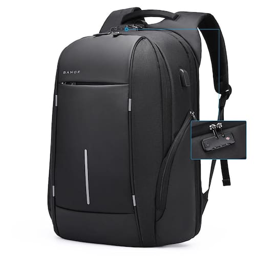 BANGE A mochila para laptop de negócios é perfeita para o trabalho diário do seu passageiro, serve para laptop de 15,6 cm. É uma mochila à prova d'água para proteger seus itens valiosos dentro. É uma mochila de voo aprovada pela FAA, você pode colocá-la no bagageiro da aeronave ou usar como mochila sob o assento. Também é uma mochila de fim de semana, você pode colocar sua câmera, fone de ouvido, carregador portátil e celular. Materiais Oxford à prova d'água de alta qualidade podem evitar que seu laptop e item eletrônico chovam. - Compartimento separado para laptop de 15,6 polegadas: a mochila Bange tem um compartimento separado para laptop de 15,6 polegadas. A esponja espessa pode proteger bem o seu notebook. A trava TSA pode evitar que seu laptop roube. - Mochila antifurto: a mochila para computador está equipada com uma trava segura inteligente feita de liga de zinco de alta resistência com um corpo sólido e compacto para evitar roubo e proteger todos os seus pertences com segurança. O bloqueio de senha é fácil de configurar (inclui instruções), consulte A+ para obter instruções detalhadas. - Mochila fina e leve: o tamanho é de 47 cm x 35 cm x 21 cm (A x C x L) e o peso é de apenas 700 g. O design elegante e fino e leve é ideal para viagens de negócios, deslocamento, compras ou qualquer outro uso diário. - Design ergonômico nas costas – alça de ombro ajustável, alça de ombro respirável é boa para aliviar o desconforto de seus ombros. O encosto acolchoado macio oferece o máximo suporte para as costas, ajuda na convecção de ar, ventilação e eliminação de calor, proporciona conforto enquanto reduz o desconforto nos ombros. - Melhor atendimento ao cliente: cada mochila da BANGE passou por vários controles de qualidade rigorosos. Mas se você tiver algum problema, sinta-se à vontade para entrar em contato conosco, fornecemos serviço de garantia vitalícia. Este item é perfeito principalmente para adultos, mas não destinado ao uso por crianças menores de 12 anos