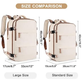 coofay Casual ou versátil, A bege com marrom, G - ? Design grande e multifuncional: o bolso diário para roupas pode conter de 5 a 7 peças de blusas ou calças finas, que podem atender às necessidades de viagens curtas ou viagens de negócios de 2 a 3 dias; também pode ser utilizado para armazenar artigos de papelaria universitários, como revistas, e o compartimento separado para laptop pode acomodar um laptop de 15,6 polegadas para suas necessidades de trabalho ou lazer em empresas e universidades. - ? Compartimento separado para sapatos e bolso úmido: o compartimento para sapatos pode conter um par de chinelos ou tênis de cano baixo, permitindo que você troque livremente em diferentes estados de viagem, viagens de negócios e esportes ao ar livre; o bolso molhado é feito de material impermeável de alta densidade, que pode ser utilizado para armazenar itens molhados, tornando sua estadia em um hotel ou apartamento mais conveniente. - ? Design de porta USB?: esta mochila tem uma porta de carregamento USB, que pode ser conectada a um carregador portátil dentro da bolsa e um celular conectado à parte externa da bolsa por meio de um cabo de dados, permitindo que você carregue seu celular ou iPad enquanto caminha, reduzindo a carga em suas mãos e evitando perder informações. Observe que a mochila não vem com um carregador portátil e cabo de dados, é apenas para a conveniência do carregamento do celular. - ?Aprovado pela maioria dos voos?: As dimensões externas são 46 x 33 x 16 cm (A × L × P), peso de 1 kg (medição manual, apenas para referência, sujeito à medição real). Esta mochila atende aos requisitos de embarque e pode ser aberta e dobrada 180 graus como uma mala, que pode passar rapidamente pela segurança do aeroporto e é especialmente projetada para viagens de avião. - ?CONFORTO E SEGURANÇA?: Design confortável com fluxo de ar nas costas, acolchoamento ventilado espesso e macio com vários painéis oferece suporte para as costas. Alças de ombro respiráveis e ajustáveis e uma fivela no peito para aliviar a pressão no ombro. Esta mochila pode ser colocada no carrinho da mala para facilitar a viagem. Bolso oculto com zíper antirroubo na parte de trás da mochila para evitar que seus pertences sejam roubados. - ?Adequada para muitas ocasiões: a mochila casual é adequada para faculdade, deslocamento, negócios, trabalho, caminhadas, viagens de curto prazo, férias de fim de semana e outras atividades. Se você tiver alguma dúvida, , ficaremos felizes em resolver seus problemas; se você não estiver satisfeito dentro de 1 mês, poderá devolvê-la gratuitamente.