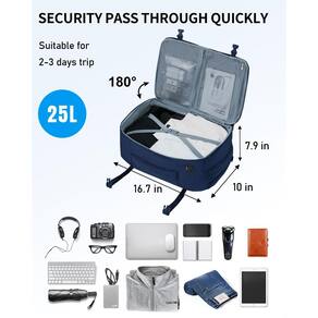 Apresentamos nossa mochila de viagem versátil, perfeita para escapadelas de fim de semana ou uso diário. Seus muitos compartimentos a tornam ideal para armazenar itens essenciais de viagem, como passaportes e passagens, enquanto explora a Europa. Aprovada por companhias aéreas, resistente à água e com uma porta de carregamento embutida, é perfeita para viajantes. As alças acolchoadas e o painel traseiro oferecem o máximo de conforto, para que você possa carregar até mesmo cargas pesadas com facilidade. Peça a sua agora para a bolsa de fim de semana perfeita para mulheres! As alças acolchoadas proporcionam transporte confortável, enquanto o bolso frontal com zíper é perfeito para itens de acesso rápido, como seu telefone ou carteira. Além disso, o espaçoso compartimento interno de organização permite que você organize e acompanhe facilmente todos os seus itens essenciais, esteja você em movimento ou no escritório. - ?Evite cobranças de bagagem no voo?: a mochila de viagem ECOHUB Airplane tem o tamanho perfeito para evitar taxas de bagagem. A bolsa de mão sob o assento mede 43 x 28 x 20 cm e tem uma capacidade de 25 L, com um peso de 700 g. Adequada para todas as principais companhias aéreas, como Spirit, Frontier, easyjet. (PATENTE PENDENTE) - ?Grande capacidade?: a mochila de mão abre como uma mala, o que torna muito mais fácil de embalar. O compartimento principal espaçoso com dois bolsos cuidadosamente projetados que ajudam seu conteúdo mais organizado e as tiras elásticas são perfeitas para itens volumosos, como sapatos e roupas. As alças de compressão laterais ajustam o espaço da bolsa de viagem para que você possa embalar mais. - ?Vários compartimentos e bolsos?: Grandes bolsos frontais organizacionais podem guardar itens importantes como iPad e notebooks, canetas, passaportes. O chaveiro pode proteger e localizar suas chaves sem desconforto. Um bolso de acesso superior para que você possa pegar seus documentos de viagem e óculos rapidamente. O bolso traseiro oculto pode guardar itens valiosos como telefone, carteira e assim por diante. Bolso com zíper de acesso rápido no painel frontal para verificação de segurança da bolsa de higiene. - ?Pronta para viajar?: Construída com uma porta de carregamento USB, a mochila inteligente manterá seu telefone totalmente alimentado quando você viajar. Perfeita para viagens curtas e longas, as alças de ombro grossas e macias com enchimento de espuma. O bolso expansível para garrafa de água é muito conveniente para viajantes e caminhantes. A alça lateral nos permite carregá-la facilmente como suporte. Enrole a alça de bagagem para facilitar a movimentação com sua mala. - ?Sustentável e garantia?: nossa mochila de mão é feita de pelo menos 50% de materiais reciclados, com tecido e forro feitos de 30 garrafas de plástico PET recicladas. O tecido leve e resistente à água, combinado com zíperes SBS resistentes e costura ripstop reforçada, garantem durabilidade para qualquer aventura. Se você tiver alguma dúvida, com seu pedido. (Patente pendente)