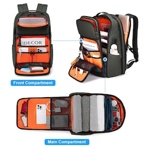 FENRUIEN é o foco da marca em fornecer bolsas profissionais. Nosso objetivo é combinar conveniência com estilo para que você possa aproveitar sua vida de forma mais elegante e fácil Este item não é destinado a ser utilizado por crianças menores de 12 anos - [Multicompartimento] Dimensões: 17,7 x 11,4 x 19,8 - 27 cm. Tem muito espaço e bolsos para qualquer coisa que você precise carregar. Você pode colocar seu carregador portátil e cabos USB em diferentes camadas. O compartimento acolchoado para computador cabe em laptops de até 17 polegadas - Fácil de verificar: o design plano aberto TSA permite que você abra esta mochila tecnológica em 180 graus para que você possa passar rapidamente pela segurança do aeroporto e manter seus itens organizados. A alça de bagagem pode ajudá-lo a prender a mochila de mão facilmente à sua mala de bagagem - Material de qualidade: esta mochila de viagem para laptop é feita de tecido oxford revestido de poliuretano 900D e couro de microfibra com zíperes SBS suaves (os zíperes não são resistentes à água), o que oferece proteção adequada aos seus itens eletrônicos e preciosos - [Design ergonômico] Alças de ombro ajustáveis antiderrapantes respiráveis em forma de S com esponja abundante ajudam a aliviar o desconforto do seu ombro. A almofada traseira respirável em colmeia 3D pode reduzir a sensação sensual das costas - [Design tipo-C] A mochila inteligente FENRUIEN tem porta USB-A e Tipo C para facilitar o carregamento de telefones ou outros dispositivos compatíveis com USB, então você não precisa segurar o carregador portátil para carregar (o carregador portátil não está incluído)