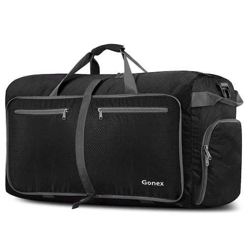 Mochila de viagem grande dobrável Gonex de 100 litros com compartimento para sapatos, mochila leve e repelente de água para acampar, academia, bolsa de fim de semana preta