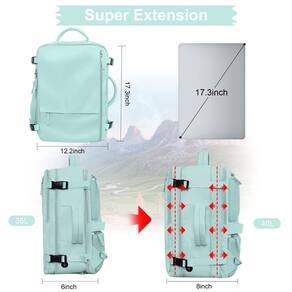 Hanples Mochila de viagem, uma mochila de marca de alta qualidade, foca no design e desenvolvimento de pessoas para viajar. Temos a missão de dar prioridade à experiência do usuário das pessoas, explorando e buscando um estilo de vida moderno, de alta eficiência e único. À prova de A mochila para laptop tem boas almofadas grossas no compartimento do laptop e no compartimento principal para proteger o laptop e outros itens dentro da mochila. É adequada para laptop de 17,3 polegadas. Maior capacidade A mochila de mão pode ser estendida para 40 L (40 x 32 x 20 cm), e o tamanho do compartimento principal 43 x 30 cm x 18 cm. Você pode levá-la para viagens de 3 a 7 dias. À prova d'água. A mochila geral para viagens é feita de tecido à prova d'água para evitar que você se molhe em dias chuvosos, e também há um compartimento de separação seco e molhado dentro, o que é conveniente para você guardar roupas de reposição molhadas. Alça grossa e larga As alças de ombro da mochila de viagem podem ser escondidas e as alças superiores e laterais grossas e largas podem ser usadas como bolsa de mão e também há uma alça de bagagem para ajudá-lo a fixá-la na mala. Esponja respirável A parte de trás da mochila casual é feita de esponja elástica e respirável. É respirável e pode tirar o calor sem superaquecer suas costas. Este item não se destina a ser utilizado por crianças menores de 12 anos. - [Capacidade expansível e adequada para laptop de 17,3 polegadas]: esta mochila para laptop tem um compartimento para laptop com boa almofada grossa, que pode proteger bem o seu laptop e também é adequada para laptops de 17,3 polegadas. Esta mochila de viagem tem muito espaço e bolsos para o que você precisa, e a capacidade é de 35 L. Uma boa companhia para viagens de 3 a 5 dias. (Peso líquido da mochila: 0,9 kg) - [Como item pessoal aprovado pela companhia aérea]: projetada exclusivamente para viagens de avião, esta mochila de mão pode ser aberta de 90 a 180 graus facilmente e rapidamente na segurança do aeroporto. Projetada para caber no tamanho máximo permitido em um voo, está disponível para manter sob o assento em voo como item pessoal, para companhias aéreas como Spirit, Easy Jet, Jet Blue - [Porta aberta multifuncional para carregar e ouvir]: a porta versátil do lado da mochila de viagem pode fornecer acesso conveniente para carregar seu telefone ou você pode usá-lo como uma porta de fone de ouvido para ouvir sua música premium. (Dicas: apenas uma porta aberta, cabo de carregamento e carregador portátil não estão incluídos) - [Material impermeável e design antirroubo]: esta mochila de viagem feminina é feita de poliéster impermeável durável, boa permeabilidade ao ar e dissipação de calor. O bolso traseiro com zíper da mochila protege seus itens preciosos, como carteira, passaporte e cartão de identificação de possíveis roubos ao viajar ou fazer fila. (Dica de limpeza: esfregue com um pano, se necessário) - [Durável e multiuso]: todos os zíperes desta mochila de mão são duráveis, suaves e resistentes à prova de explosão. As alças de ombro podem ser escondidas, para que você possa carregá-la como uma pasta usando a alça lateral. Há também uma alça de bagagem para ajudar você a fixá-la na mala