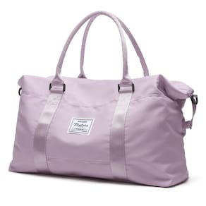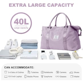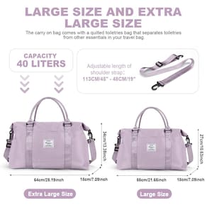 Weekender Overnight Bag for Women - Design separado a seco e molhado: o bolso de material resistente à água de alta densidade pode ajudá-lo a separar itens secos e molhados, se você tiver roupas ou toalhas molhadas, pode colocá-la nesta bolsa de ginástica. Não se preocupe com eles ficarem molhados - Bolsa noturna de tamanho extra grande: o tamanho extra maior aumenta a capacidade em 30%, seu tamanho é 40 L; Dimensões: 34 x 64 x 18 cm. Atende à maioria dos requisitos internacionais de bagagem de mão. Esta bolsa de viagem de fim de semana tem 6 bolsos - Bolsa de viagem adequada para aviões: a bolsa de mão perfeita para viagens aéreas. A manga de carrinho integrada desliza sobre a alça de bagagem, facilitando as viagens no aeroporto. Sua bolsa de embarque ideal para o fim de semana para viagens de negócios ou pessoais - Bolsa esportiva de ampla aplicação: uma escolha perfeita para você carregar todos os seus esportes, academia, viagens de fim de semana, uso diário e itens essenciais de viagem. Use como bolsa de viagem, bolsa de fim de semana, bolsa de mão, bolsa de itens pessoais, bolsa de ginástica - Bolsa de fim de semana com pontos extras: as bolsas de viagem femininas vêm com uma alça ajustável removível, você pode carregá-la como bolsa de ombro, bolsa de mão ou bolsa cruzada como quiser. As bolsas femininas de fim de semana são feitas de tecido de nylon resistente a rasgos e à água de alta qualidade