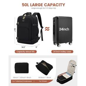 LOVEVOOK Mochila de viagem grande para mulheres e homens, mochila de transporte de 50 L para aviões, bolsa de viagem TSA para itens pessoais para laptop de 45,7 cm, à prova d'água, aprovada por companhias aéreas com 3 organizadores - Aprovado por companhias aéreas e TSA: experimente viagens aéreas sem desconforto com nossa mochila de mão. Medindo 36 x 23 x 50 cm, cabe confortavelmente em compartimentos suspensos e sob o assento. Projetada para verificações rápidas de segurança, abre 180 graus, tornando-a a companhia de viagem perfeita para suas viagens. - Grande capacidade com ótima organização: esta mochila de viagem possui uma capacidade generosa de 50 L, perfeita para 3-5 dias de itens essenciais de viagem. 3 compartimentos grandes e 18 bolsos, garantindo que tudo esteja bem organizado. Um compartimento dedicado e acolchoado cabe em um laptop de 18 polegadas para máxima segurança. O bolso elástico para garrafa de água segura com segurança uma garrafa de 500 ml. Este design versátil torna esta mochila perfeita para viagens, viagens de negócios, escapadelas de fim de semana e uso diário. - Resistente e confortável: atualizada com zíperes à prova de explosão e tecido resistente à água, esta mochila foi construída para longevidade. Suas alças de ombro reforçadas e resistentes a rasgos e acolchoamento de esponja respirável garantem conforto e longevidade. É perfeita como uma mochila de transporte para aviões, mochila de viagem de um dia de fim de semana, mochila noturna, mochila de acampamento para caminhadas, mochila de negócios, mochila de trabalho, mochila universitária ou mochila casual. - Com 3 organizadores e bolso molhado: nossa mochila de viagem para mulheres equipada com 2 cubos de mão, é ideal para guardar roupas íntimas, meias e roupas pequenas. Uma bolsa de sapato equipada com 42 cm de comprimento, pode armazenar de 1 a 2 pares de sapatos. O bolso úmido impermeável de alta densidade é perfeito para produtos de higiene pessoal e roupas úmidas, mantendo seus pertences de viagem organizados e separados. - Presente ideal para entusiastas de viagens: a mochila LOVEVOOK para mulheres é um presente perfeito para aniversários, Ação de Graças, Natal, Ano Novo e Dia dos Namorados. Adequada para homens e mulheres, esposa, namorada, mãe, filha e amigas, é uma companhia versátil como uma mochila de viagem aprovada em voo, mochila para laptop de viagem ou pacote de itens pessoais.