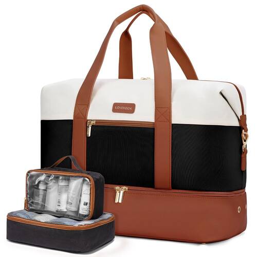 Esta bolsa de viagem de grande capacidade pode armazenar facilmente itens de viagem de 3 a 5 dias. A aparência da cor contrastante é elegante e bonita, e tem usos multifuncionais. Pode ser usada como bolsa de fim de semana, bolsa de mão, bolsa de ginástica, bolsa de hospital, bolsa de mamãe, etc. Tem um compartimento separado para sapatos, uma bolsa de separação seca e úmida e vem com dois organizadores para manter suas roupas organizadas durante a viagem. - Tamanho e armazenamento ideais: Novo modelo projetado com capacidade de 46L, perfeito para viagens curtas ou sessões de academia. Possui vários bolsos internos e externos para armazenamento organizado. - Durável e resistente à água: feito de materiais de alta qualidade que oferecem durabilidade e proteção à prova d'água, protegendo seus pertences em todas as condições. - Conforto e versatilidade: equipado com alças acolchoadas e uma alça de ombro ajustável, garantindo um transporte confortável seja de mão ou pendurado sobre o ombro. - Elegante e leve: possui um design elegante e moderno que é perfeito para qualquer ocasião. Mesmo com sua capacidade de armazenamento de 46L, permanece leve e fácil de transportar. - Fácil de transportar avião: projetado para atender aos regulamentos de tamanho de bagagem de mão da companhia aérea, tornando-a uma companhia de viagem conveniente para o seu compartimento aéreo.