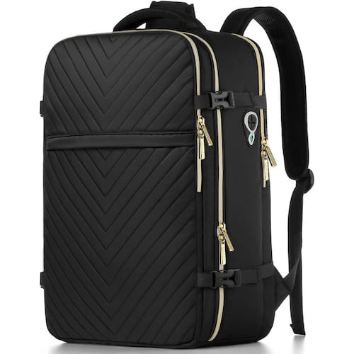 LUOCIP Mochila de viagem grande feminina, aprovada para voos, mochila de mão, resistente à água, antifurto, grande, casual, para laptop de 17 polegadas com porta de carregamento USB, preta - Mochila de viagem aprovada por aviões – a dimensão da mochila preta é 49 x 31 x 19 cm. Tamanho perfeito para voos aprovados. Peso de 1,2 kg. A capacidade é de 40 L. Você pode embarcar no avião com esta mochila resistente à água para laptop como um item pessoal e economizar no pagamento de taxas extras de bagagem. Dois compartimentos para laptop para iPad de 13 polegadas e laptop de 17,3 polegadas. Um bolso lateral expansível para garrafa de água ou guarda-chuva. O compartimento frontal tem muitos bolsos para manter seus pertences organizados. - Mochila de viagem de grande capacidade – Esta mochila extra grande oferece mais capacidade de embalagem de até 40 L para sua viagem. O compartimento principal tem espaço de armazenamento suficiente para armazenar de 8 a 10 roupas e necessidades diárias. Ela também tem elásticos embutidos para evitar que suas roupas caiam. O fecho de zíper duplo TSA de 180 graus ajuda você a passar pela verificação de segurança rapidamente. Esta mochila de viagem é a melhor escolha para férias femininas e masculinas, escapadas de fim de semana, pernoite e viagens de negócios. - Bolso molhado e material útil – esta mochila de mão possui material impermeável de alta densidade e zíper de metal resistente faz com que a bolsa de viagem dure mais tempo. A bolsa úmida ajuda você a separar itens molhados e secos, como roupas ou toalhas molhadas. Na lateral de mochilas casuais, projetamos um orifício para cabo. Você pode conectar o carregador portátil e através do orifício, carregar facilmente seu telefone enquanto estiver em movimento. Você também pode colocar o cabo do fone de ouvido através deste orifício para o seu telefone. Desfrute da música em qualquer lugar. - Alças ajustáveis no peito e alças de ombro – a mochila de bagagem é construída para ser mais confortável. O design de malha de esponja respirável na parte de trás e as alças de ombro ajudam na eliminação de calor e esta bolsa equipada com uma alça peitoral ajustável oferece uma melhor experiência de uso que ajuda a aliviar o desconforto do seu ombro. Use-a como uma mochila de fim de semana, caminhadas, acampamento, viagem de avião, mochila de negócios, mochila universitária ou mochila casual. - Cinto de bagagem e bolso antirroubo – Com o cinto de bagagem na parte de trás, o viajante de negócios pode caber a mochila diretamente na mala, fácil de transportar. Um bolso oculto antirroubo localizado na parte inferior das costas protege seus itens valiosos, como carteira, passaporte, carteira de identidade ao viajar ou fazer fila. - Mochila amplamente usada, presente perfeito – esta mochila para viagens pode ser usada como uma mochila diária, uma bolsa universitária espaçosa, uma mochila para um laptop. A melhor opção de presente para sua esposa, mãe, amigas, etc. em aniversários, Dia de Ação de Graças, Natal, Ano Novo e Dia dos Namorados. Tenha uma boa viagem de fim de semana com sua família. Este item não se destina a ser utilizado por crianças menores de 12 anos.