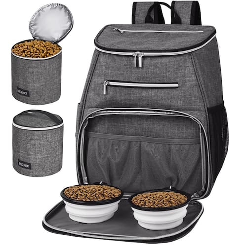 - Viagem ideal: esta mochila para animais de estimação pode acompanhar você e seus animais de estimação para passar momentos felizes, não importa quando e onde; seu bolso frontal é aberto como uma almofada de alimentação, e o bolso lateral de malha pode carregar uma chaleira e toalhas, cada recipiente de comida pode conter de 12 a 15 xícaras de comida moída grosseiramente para atender às suas necessidades de alimentação fácil para animais de estimação a qualquer hora, em qualquer lugar.