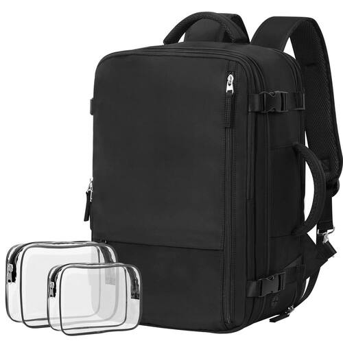 Especificações: Tecido: poliéster de qualidade resistente à água. Ocasiões: viagem/negócios/faculdade/trabalho/caminhadas/presentes. - Projetada para viagens: - Tamanho aprovado pela companhia aérea: 44 x 31 x 21 cm. A mochila aprovada pela Getravel atende aos requisitos de portabilidade da maioria das companhias aéreas. Pode ser colocada no compartimento superior ou embaixo do assento. - Design expansível: a mochila tem um design expansível que pode ser expandido de 35 L para 40 L de espaço de armazenamento para mudar como você desejar, que é muito espaçosa e pode facilmente armazenar 3-7 dias de equipamento de viagem. - Sacos de armazenamento separados: os 2 sacos de lavagem podem manter seus itens pessoais limpos e arrumados, reduzir problemas de armazenamento e facilitar a viagem. Vários compartimentos e bolsos. 1. Compartimento principal: 35L-40L de espaço de armazenamento da mochila para trocar como desejar, a capacidade máxima pode armazenar 3-7 dias de roupas. 2. Compartimento para laptop: um bolso acolchoado para laptop que comporta um laptop de até 17 polegadas. 3. Bolso lateral frontal: para livro, caneta, carteira, bolsa, óculos ou outros itens. 4. Bolso frontal com zíper: para passaporte, chaves, fone de ouvido ou outros itens pequenos. 5. Bolsa de separação úmida e seca: a bolsa úmida de comprimento total é feita de material impermeável de alta densidade para isolar itens úmidos, como toalhas ou roupas molhadas, etc. 6. Bolso lateral: bolso lateral para guarda-chuva, garrafa de água, etc. Dicas quentes: 1. Não exponha a chuva forte por muito tempo sem qualquer capa de chuva. 2. Feche o zíper completamente e coloque o puxador de zíper na parte inferior, para evitar a abertura do zíper devido à forte agitação ao caminhar. Observação: este item não é destinado a ser utilizado por crianças menores de 3 anos. - Tamanho aprovado para voo: a mochila Getravel atende aos requisitos de portabilidade da maioria das companhias aéreas. As mochilas abrem facilmente de 0 a 180 graus e cabem sob o assento do avião ou no teto e ajudam você a passar pela segurança rapidamente - Mochila expansível de grande capacidade: nossa mochila pode ser expandida de 35 L para 40 L. Design de armazenamento com vários bolsos e zonas, que é muito espaçosa e pode armazenar facilmente de 3 a 7 dias de equipamento de viagem (tamanho: 44 x 31 x 21 cm; peso: 1 kg) - Design de orifício de carregamento USB: esta mochila grande com um design de orifício de carregamento USB facilita carregar seu telefone ou outros dispositivos enquanto viaja (o carregador portátil e o cabo não estão incluídos) - Com capa para carrinho e bolso antirroubo: esta mochila para laptop de 17 polegadas vem com uma alça de bagagem que pode prender a mochila à mala. Um bolso oculto com zíper antirroubo pode armazenar objetos de valor, como telefones celulares ou cartões para evitar roubo - 2 bolsas de higiene adicionais: esta bolsa de viagem vem com 2 bolsas de higiene. O design de cubo transparente à prova d'água oferece uma visão geral clara dos produtos de higiene pessoal, mantenha seus pertences limpos e organizados - Com bolsa acolchoada para laptop que comporta um laptop de até 17 polegadas. Suporte acolchoado de espuma e alça superior para um longo tempo de transporte. Esta mochila é perfeita para viagens de negócios, viagens, faculdade, uso diário no trabalho, etc