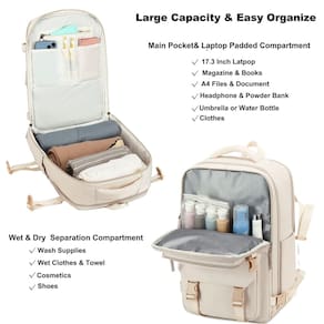 Mochila para laptop de 43 cm, mochila de viagem de negócios, grande, bolsa de livros universitária, bolsa de computador para mulheres e homens, Bege, Viagem - ? Tamanho grande e material durável: o tamanho da mochila é de 35 x 19 x 45 cm (C x L x A). Peso: 900 g. . Feita de tecido de nylon leve e resistente à água com zíper de metal da marca SBS para fazer a mochila moderna garantir um uso seguro e duradouro no dia a dia e dicas de negócios - ? Design atencioso e bolso molhado: a bolsa casual para livros é construída para ser mais confortável durante horas de transporte, com enchimento. Alças ajustáveis e respiráveis que aliviam o desconforto do peso em seus ombros. Considere as necessidades diárias ou de viagem. A mochila possui um compartimento à prova d'água com separação úmida e seca, que pode colocar seus itens molhados ou suprimentos de lavagem. - ? Prática e segura: uma alça de bagagem permite que a mochila de mão aprovada para voo se encaixe na bagagem/mala, deslize sobre o tubo da alça vertical para facilitar o transporte. Com um bolso oculto à prova de roubo na parte de trás protege seus itens valiosos de ladrões. Bem feita para viagens de avião internacionais e viagens de um dia como um presente de turismo para homens e mulheres - ? Grande capacidade e bem organizada: a espaçosa bolsa para laptop com um compartimento separado para computador comporta laptop de 17,3 polegadas, bem como Macbook/tablet PC de 15,6 polegadas e 14 polegadas. Um compartimento principal espaçoso da bolsa de livros serve para iPad, carregador, fichários, revistas A4, livros, roupas, etc. Um compartimento seco e úmido. O pequeno bolso frontal com zíper pode colocar seu telefone ou óculos de sol. E o bolso com fivela pode guardar seus outros itens pequenos. Bolso elástico de dois lados para guardar sua garrafa de água ou guarda-chuva - ? Multiuso e ocasiões: a mochila multifuncional para itens pessoais pode servir bem como bolsa de trabalho no escritório, também perfeita para universidade, viagens, viagens de negócios, escapadelas de fim de semana, compras e atividades ao ar livre no dia a dia. Este item não se destina a ser utilizado por crianças menores de 12 anos.