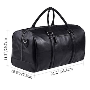 11 cm - Zíper super grande-angular: a bolsa esportiva de fim de semana de ombro é projetada com zíper extra longo e extra grande angular, que é fácil de colocar e tirar todos os tipos de itens, e também é feita de zíper de metal de alta qualidade, suave e sedoso, adicionando mais felicidade às suas viagens - Melhor praticidade: a bolsa de viagem de couro tem alças acolchoadas ajustáveis. Há um bolso com zíper na frente e um compartimento para barra de bagagem na parte de trás, o que facilita a fixação da bolsa de viagem à barra de bagagem com mais facilidade - Bolsa de negócios grande: 50,8 cm/25,4 cm/27,2 cm (C x L x A). Peso: 1,5 kg. Adequado para dois dias de fim de semana ou viagem de negócios. Estilo clássico unissex perfeito para homens e mulheres - Materiais de alta qualidade: esta bolsa esportiva é feita de couro PU de alta qualidade, couro espesso e forro. E o material de couro não rasga ou rasga quando você colocar muitos itens nesta bolsa de mão - Bolsa vintage elegante: pode ser usada como bolsa de viagem, bolsa de ginástica, bolsa esportiva esportiva, bolsa noturna, bolsa esportiva militar, bolsa de bagagem de mão para homens e mulheres