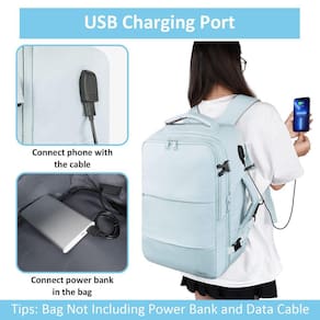 Porta USB conveniente: mochila para laptop de viagem com carregador USB embutido na parte externa e cabo de carregamento embutido no interior. A bolsa de viagem para itens pessoais oferece uma maneira mais conveniente de carregar seu telefone enquanto caminha. Observe que a mochila de viagem feminina não se alimenta sozinha e não inclui banco de energia e cabo. A porta de carregamento USB oferece apenas fácil acesso ao carregamento
