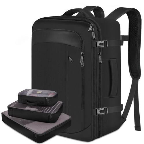 Vancropak Mochila de viagem Material: poliéster e poliuretano Dimensões: Tamanho normal: 18,9 x 12,9 x 16,23 polegadas largura após a expansão: 18,9 x 12,9 x 7,3 polegadas Peso: 1,1 kg Bolsos principais: 1 compartimento principal espaçoso: pode guardar todos os tipos de roupas que você precisa para viajar. Além disso, há 3 cubos de embalagem incluídos no compartimento principal. Você pode armazenar roupas diferentes em organizadores de diferentes tamanhos, há duas tiras elásticas de fixação na parte inferior do compartimento principal, que podem fixar firmemente seus itens 1 bolso principal do meio: há 1 bolso interno com zíper para guardar passaportes ou outras coisas, 1 pequeno bolso de malha com zíper para guardar chaves ou outros itens pequenos, 2 bolsos para caneta e 1 bolso pequeno 1 bolso frontal com zíper: utilizado para guardar cadernos, revistas, livros, etc. 1 bolso anti-Theif: utilizado para guardar seus pertences ou pertences A embalagem inclui: 1 mochila de viagem. 1 × O maior cubo (tamanho: 43 x 33 x 6 cm) 1 cubo maior (tamanho: 35 x 24 x 6 cm) 1 cubo pequeno (tamanho: 27 x 15 x 6 cm) Ótima opção de presente. Esta mochila de viagem grande com um tamanho de 50 L pode armazenar tudo o que você precisa durante a viagem. É um excelente presente para o seu namorado, família e amigos para o Natal, Dia dos Namorados, Dia de Ano Novo, Dia dos Pais, Dia de Ação de Graças, aniversário, e também é um presente a boa escolha de presente para amigos, família, namorados - Fácil de organizar: Compartimento principal com bolso de malha separado e espaço espaçoso para armazenar diferentes equipamentos de viagem. As tiras elásticas de compressão interna oferecem boa proteção para tudo. Compartimento frontal com vários bolsos para guardar cadernos, canetas, chaves, fones de ouvido e outros itens pequenos. Um bolso traseiro antirroubo é adequado para objetos de valor. Bem feita para viagens de avião internacionais e viagens de trabalho como um presente de viagem para homens e mulheres - Capacidade expansível e grande: Dimensões: 48 x 33 x 15,8 cm. Leve: 1,33 kg. Com o recurso expansível, dimensões expandidas: 48 x 33 x 21 cm. Esta mochila de viagem oferece a você mais capacidade de embalagem, até 40 L. Comporta facilmente equipamentos de viagem de 3 a 7 dias. A mochila grande para viagem cabe no topo da cabeça enquanto permanece dentro do tamanho padrão de transporte. Ideal para viagens de negócios ou fim de semana e facilmente transportada na maioria dos voos - Design amigável ao TSA: esta mochila de viagem possui um design amigável ao TSA, pode ser desdobrada em 180° através da verificação de segurança do aeroporto, conveniente e rápida. Uma alça de bagagem pode ser usada para fixar a mochila na mala e deslizar no tubo da alça vertical da bagagem para facilitar o transporte - Confortável e resistente: feita de tecido de poliéster resistente à água e material antiarranhões, garante um uso seguro e duradouro. Equipada com alças ajustáveis, tiras no peito, painel traseiro ventilado de malha de ar e duas alças acolchoadas de espuma, a mochila Carryon aprovada pela Flight oferece uma experiência de viagem incomparável. São bons presentes para o Dia das Mães e também bons presentes de viagem para namorada, esposa, amigas - 3 cubos PCKING ADICIONAIS: cubo grande para jaquetas, suéteres, calças, cubo médio para camisas, shorts, blusas, cubo pequeno resistente à água com lateral transparente para fornecer uma visão geral clara dos produtos de higiene pessoal. Serve bem como bolsa de mão profissional, bolsa de viagem de fim de semana
