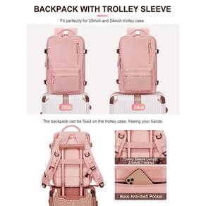 VGCUB Mochila grande de viagem, trabalho, negócios, bolsa de viagem aprovada para laptop para mulheres e homens, Rosa puro, Grande - ?Mochila com vários bolsos de grande capacidade?A mochila de viagem com muitos compartimentos comporta cerca de 40 L. O bolso principal pode guardar seus artigos de viagem, cabe de 5 a 8 peças de roupas. Compartimento frontal O compartimento frontal com vários bolsos pode ser utilizado para guardar cadernos, canetas, fones de ouvido e outros itens pequenos, para uma escolha rápida. A bolsa de viagem tem um compartimento embutido para laptop que cabe na maioria dos laptops de 15 polegadas e fica próximo às suas costas. - ?Com porta de carregamento USB?Design de interface USB, ótima conveniência para carregar seus dispositivos eletrônicos conectando seu próprio carregador portátil, então esta mochila USB oferece uma maneira mais conveniente de carregar seu telefone enquanto viaja. - ?Com capa para carrinho e bolso antirroubo?Uma capa de carrinho na parte de trás permite que a mochila de viagem se prenda à alça de uma bagagem de mão para transporte sem usar as mãos, facilitar o transporte. Com um bolso oculto antirroubo na parte de trás protege seus itens valiosos de ladrões. - Compartimento independente para sapatos e bolsa úmida: um compartimento para sapatos na parte inferior da mochila para manter os sapatos separados e todo o resto limpo. Dois orifícios de ventilação no compartimento para sapatos, o que o torna respirável para não ter mau cheiro. A bolsa frontal úmida da mochila de viagem à prova d'água aprovada por voo com material impermeável de alta densidade pode ajudar você a separar itens secos de itens molhados, como roupas ou toalhas molhadas - ?Alças de ombro respiráveis ajustáveis?As alças acolchoadas robustas e o painel traseiro da mochila para laptop para caminhar estável e confortável. Uma alça de esterno removível que conecta suas duas alças de ombro, bem como um painel traseiro ventilado de malha de ar que ajudou a minimizar o suor nas costas. Este item não se destina a ser utilizado por crianças menores de 12 anos.