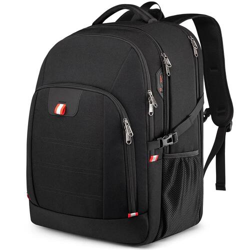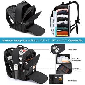 Mochila de grande capacidade com compartimento separado para notebooks de até 18,4 polegadas - GRANDE CAPACIDADE E ESPAÇO DE ARMAZENAMENTO: Tamanho da mochila grande: 35,8 cm * 24,9 cm * 54,9 cm. Capacidade: 50 L. Um compartimento separado para laptop comporta laptops de 18,4 polegadas, bem como laptops de 17,3, 17, 16, 15,6 e 15 polegadas. Um compartimento principal Rommy para roupas, acessórios de viagem de trabalho e arquivos serve para viagens de negócios curtas. Compartimento secundário espaçoso para necessidades diárias ou suprimentos. Organizador frontal para pequenos itens, canetas, chaves, óculos. Bolsos laterais profundos com zíper para guarda-chuva ou garrafa de água - Aprovada pela TSA e resistente: Design conveniente no ponto de verificação: a mochila de negócios pode ser aberta de 90 a 180 graus, fazendo você passar rapidamente pela segurança do aeroporto e manter os itens organizados, projetada exclusivamente para viagens de avião. A alça de bagagem permite que a mochila se encaixe na bagagem/mala, deslize sobre o tubo da alça vertical para facilitar o transporte. Com um bolso oculto antirroubo na parte de trás protege seus itens valiosos de ladrões - Orifícios funcionais para USB e fone de ouvido: com fenda de carregamento USB, a mochila USB grande oferece a você uma maneira mais conveniente de carregar seu telefone enquanto caminha. Um orifício para fone de ouvido externo dá fácil acesso ao uso do fone de ouvido. Permite que você ouça música e aproveite a viagem com as mãos livres. Observe que esta mochila não inclui o carregador portátil em si, o orifício de carregamento USB oferece apenas uma maneira fácil de carregar. A mochila preta para computador é adequada para atividades internas e externas - Material resistente e sólido: esta mochila estética é feita de tecido de poliéster resistente à água e resistente com zíper de metal macio. Garante um uso seguro e duradouro no dia a dia e em viagens. Serve como bolsa de viagem, mochila de professor, mochila de trabalho, mochila de caminhada - ADEQUADA PARA TODAS AS PESSOAS/OCASIÕES: a mochila antirroubo é perfeita para o trabalho/deslocamento/viagens internacionais/viagem de fim de semana/caminhada/acampamento. Ótimo presente para mulheres / homens / família / amigos / mãe / pai. É uma boa escolha para adultos como mochila de trabalho, escritório, viagem de negócios, mochila de viagem ou mochila de compras diárias