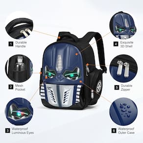 Mochila infantil Dilunar para crianças em idade escolar, meninos, jardim de infância e ensino fundamental — Design moderno: a mochila tem olhos luminosos. Tamanho: 14,6" x 12" x 4,7" (37 x 30 x 12 cm) adequado para crianças de 2 a 4 anos. - Zíper durável: garantia de 3 anos para o zíper da mochila. - Certificado CPC: o material da mochila infantil é inofensivo - Detalhes: Feito de poliéster e couro fáceis de limpar e construído com alças acolchoadas e ajustáveis com costura e fivela reforçadas. - Espaço suficiente: 1 compartimento principal, 2 compartimentos frontais e 2 bolsos laterais.