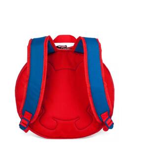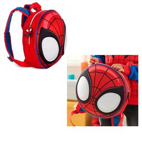 Uma mochila circular inspirado na máscara distinta do super-herói, inclui os olhos, o logotipo do Aranha bordado nas costas e um zíper figurativo em PVC.