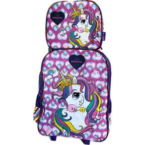 Kit Mochila E Lancheira Unicórnio Roxo Com Glitter - Luxcel