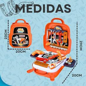 Características Produto 3 em 1: mochila, bancada e maleta Ferramentas realistas em plástico resistente Estimula criatividade e coordenação motora Design colorido e atrativo Fácil de montar e desmontar Ideal para brincar sozinho ou com amigos Produto educativo e interativo Seguro e leve, ideal para crianças pequenas