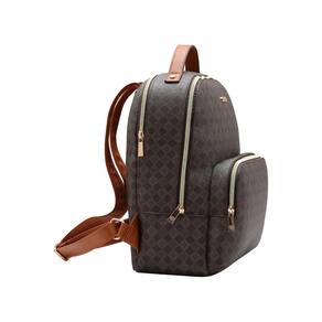 Mochila feminina com estampa exclusiva de elementos gráficos em padrão geométrico, trazendo um visual moderno e elegante para o dia a dia.